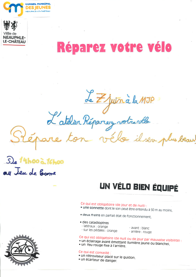 Dans le cadre de leur projet « La Sécurité à Vélo », le Conseil Municipal des Jeunes a organisé un atelier pratique et solidaire : « Répare ton vélo ».