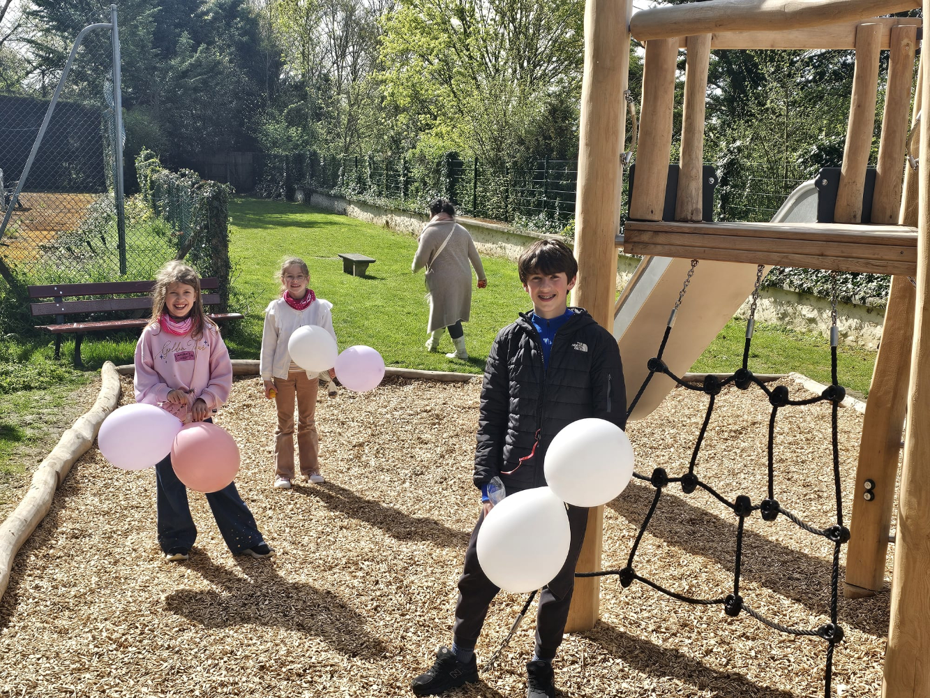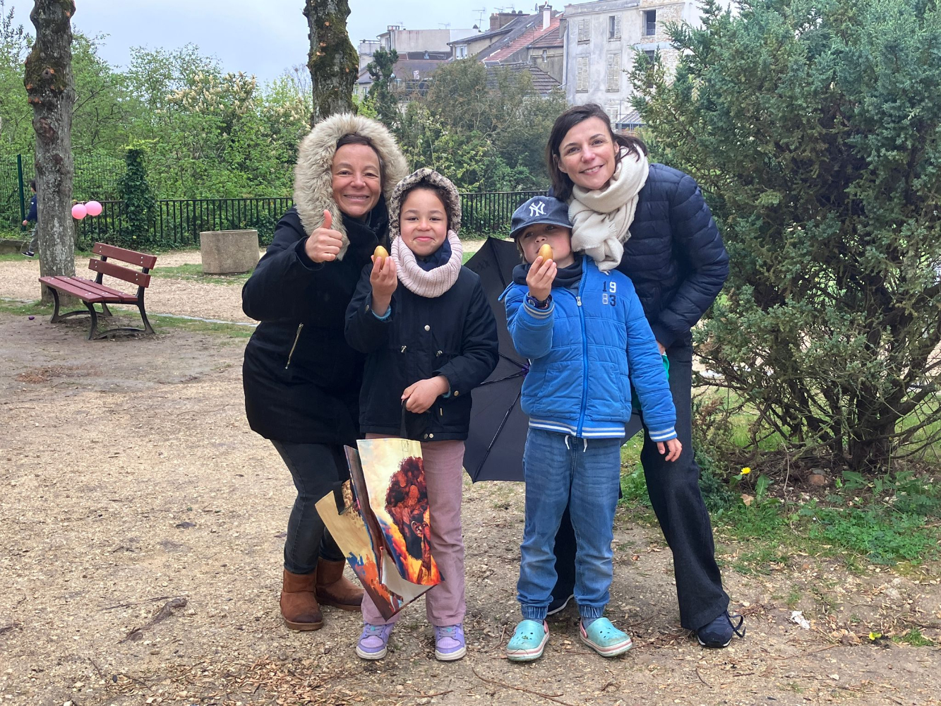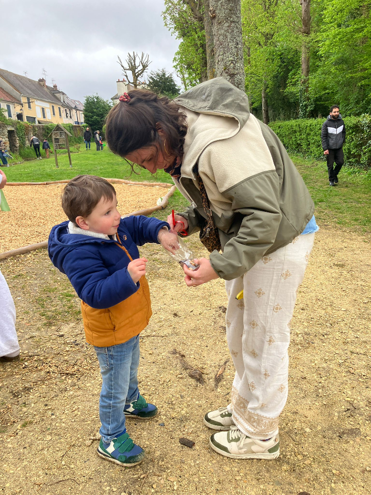 Dès le début de l’activité, les enfants, munis de leurs paniers, se sont lancés avec enthousiasme à la recherche des précieux trésors. De nombreux œufs colorés avaient été soigneusement dissimulés un peu partout dans le parc : au pied des arbres, dans les massifs fleuris, mais aussi autour et même au cœur des structures de jeux, pour le plus grand plaisir des petits explorateurs.