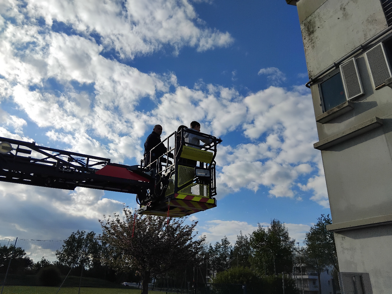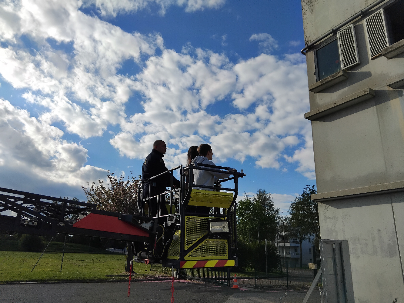 Moment fort de cette expérience : les jeunes ont eu l’opportunité de tester la grande échelle. Chacun a pu s’élever jusqu’à 14 mètres, un souvenir impressionnant qui restera gravé !