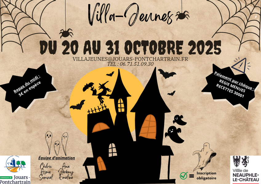 VILLA JEUNESTéléphone : 01 30 54 21 55 / 06 71 51 09 30Courriel : villajeunes@jouars-pontchartrain.fr